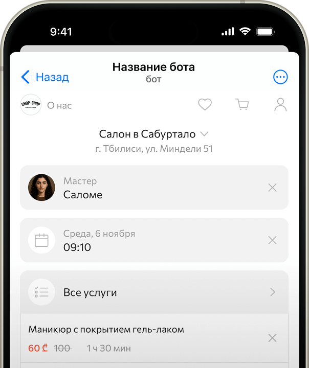 Сервис для салонов и специалистов, которые работают с клиентами через мессенджеры